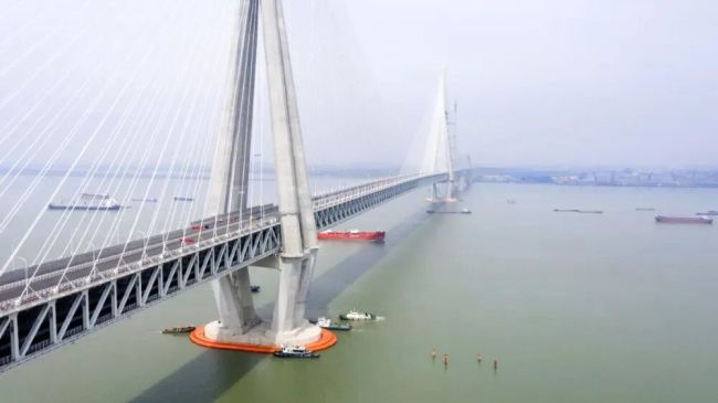为应对船只碰击危险,中铁山桥研宣告一种新式防护系统——自浮式钢骨软体多级耗能防撞设备。这种设备经过橡胶层和内部陶粒的结合,可以吸收冲击动能,削减碰击力达35%。